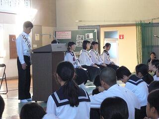 新規採用の染矢先生の研究授業がありました。毎日毎日、「どうすれば生徒達に、給食を作っている人たちの思いを考えさせられることができるのか」を悩みながら教材研究をしていました。当日は、学級担任の先生と一緒に、活気があり、そして「なるほど」と生徒のうなずきが多い授業を展開していました。生徒たちもたくさん発表をしていました。みんな好き嫌いがなくなるかな?