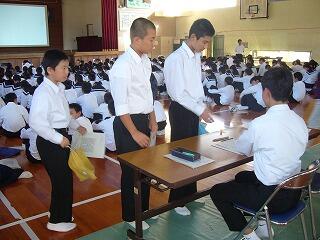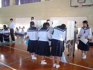 今日は、生徒会役員演説会そして選挙がありました。この日に向けて、立候補者も応援者もそして学級も、精一杯頑張ってきました。立候補者は、1年生も2年生も立派に、自分の公約を発表することができました。特に2年生は、身振り手振りで、具体的な例を挙げながらに公約を述べ、生徒達のみならず、職員も感心して聴いていました。どの候補者が役員になっても、大丈夫だなと思いました。それから、選挙管理委員の皆さん、会場設営から集計まで本当にご苦労様でした。