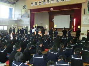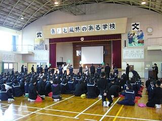 その後、給食に関するクイズで、大盛り上がりの体育館でした。