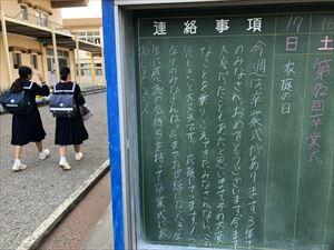 掲示板には、後輩から卒業する3年生への応援と感謝の気持ちが書いてあります。