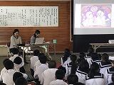 高鍋東小学校に避難するほどの大きな地震で心配な1日でしたが、午後から1年生と3年生でふるさと講話を実施しました。1年生は石井記念にっしん保育園の永井先生と平部先生を講師としてお迎えし、「石井十次先生の人生」についてお話をしていただきました。3年生は、講師に県福祉協議会の岡村先生、社会福祉法人まほろば福祉会の古川先生をお迎えし、「福祉の仕事」についてお話をしていただきました。どちらも、生徒たちは興味をもって熱心に聞き入っていました。先生方、どうもありがとうございました。