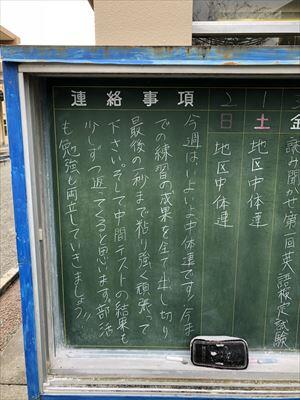 今週の掲示板には、週末からの西都児湯中学校総合大会(中体連)のエールと中間テストのことが書いてあります。