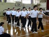 吹奏楽部の演奏に合わせて、各部活動ごとに大きな掛け声とともに