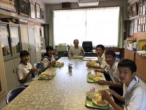 29日(水)に女子卓球部、30日(木)に男・女柔道部、31日(金)にバレーボール部と校長室で給食を食べながら、大会の抱負について聞きました。