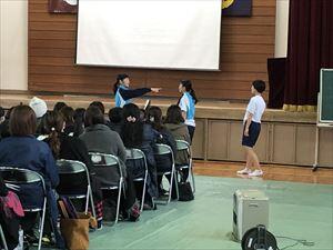 吹奏楽部の演奏、生徒会役員によるステージでの説明など、東中学校の生活・学習面などについて、小学生にとって楽しく、分かりやすく説明を行いました。閉会後は多くの6年生が部活動の見学をしていました。