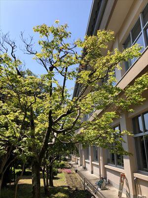 4月23日(木)、休校中でとても寂しい学校ですが、校内の植物は日々成長して、春の美しい姿を見せてくれています。