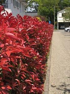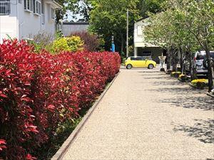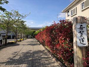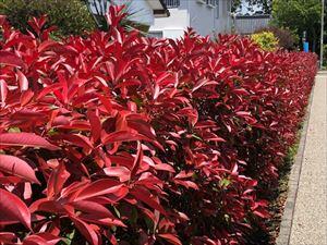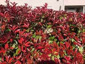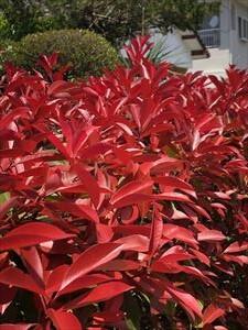 正門側の通学路(希望の道)では、今の季節に紅かなめ(レッドロビン)の赤い葉が美しく輝いています。