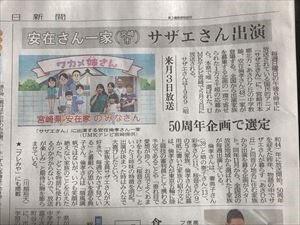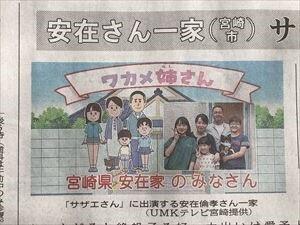 5月3日(日)午後6時半からの「サザエさん」(UMKテレビ)に、本校の安在典子先生(2年3組担任)のご一家が登場します。