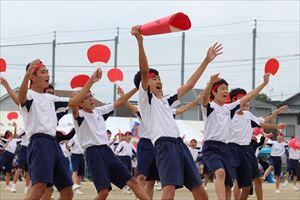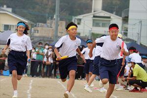 コロナ禍の様々な制限の中、保護者や地域の方々のご理解とご協力を得て、280名の生徒の団結と笑顔で一生懸命に競技する姿が印象的なすばらしい体育大会を開催することができました。