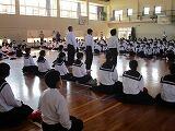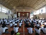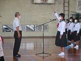1・2年生にとって初の県大会となる「宮崎県中学校秋季体育大会」の選手激励式を28日(水)に体育館で行いました。出場する部のキャプテンが抱負を述べた後、校長先生・中川七海生徒会長の激励があり、矢野有希子さん(女子卓球部キャプテン)が選手宣誓を行いました。最後に応援団によるエールのもとに、全員で東中応援歌「栄光をこの胸に」を歌いました。