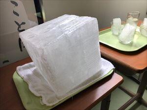 3月8日(月)、東中に南極の氷が。第62次南極観察隊(海上自衛隊砕氷艦しらせ)から届いたもので、約30cm四方のとても固く大きな氷です。