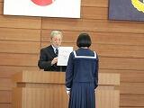 1・2年生、生徒会の代表が3学期の反省を発表したのち、修了証授与、校長先生からのお話、表彰等がありました。