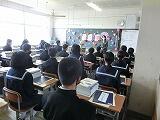 前半は部活動紹介、後半は生徒会役員による学校生活の説明がありました。部活動紹介では、どの部も趣向を凝らしてあり、おもしろく紹介する部もあったり、真剣な練習風景を紹介したりと、部ごとに特色ある発表でした。学校生活の説明では、アニメちびまる子ちゃんの役に扮して、楽しい会話を織り交ぜながら、分かりやすく、興味をひくプレゼンで、大盛り上がりでした。最後の応援団の姿にも感動しました。短い春休みと忙しい新年度の時間を使っての準備・練習、大変ご苦労様でした。慣れない新生活で、緊張していた1年生からもたくさんの笑みがこぼれており幸せな時間を過ごすことができました。