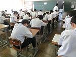 今日は月1回のボランティアの方々による読み聞かせがありました。今日は1年生3クラスが対象でしたが、真剣に聞き入る生徒の姿がみられました。とてもいい光景です。体育の授業は、体育大会関連の取組がみられたり、放課後は、発表会に向けての吹奏楽部の練習や中体連大会に向けての取組がみられます。充実した日々の学校生活です!!