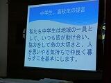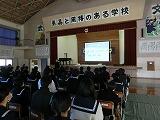 午前中に防災教育講演会が行われました。宮城県の防災アドバイザーの方の講演で、災害時の中学生の地域での役割を具体的に教えていただきました。生徒たちも真剣に中学生としての役割を学んでいました。最後に画面に映る中学生への提言をみんなで唱和しました。大変貴重な時間を過ごすことができました。ありがとうございました。