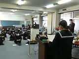 今日は2学期終業の日でした。バレー部の生徒たちは寒い中あいさつ運動を行っていました。終業式では、先日卒業生からいただいたフィギュアの前で生徒代表4名が反省とともに決意をしっかり述べてくれました。今学期の表彰も行われましたが、生徒の皆さんの大活躍で表彰数が多く予定時間より時間がかかりました。嬉しい悲鳴です。
