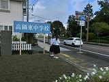 今朝の登校時は、昨夜の安全・安心メールでお知らせしたように、集中豪雨となりました。凄い状況でしたが、想定通り行動がとれてよかったと思います。めったにないことですが、このような時は、体育着を含め着替えを持参する必要があると改めて思ったところでした。朝からバタバタしましたが、廊下のしずくを拭き上げてくれる生徒の皆さんの姿を見て、素晴らしい学校だと改めて思いました。