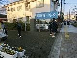 今日は終業日です。花壇は霜柱が立ち花が凍っていました。大清掃後、急遽オンラインでの終業式を行いました。表彰も行われましたが、あまりにも賞状が多く、名前の読み上げのみとなりました、それだけ今学期の生徒の皆さんの活躍は大変嬉しく思います。学年集会で3年生は、合格祈願の七転び八起きのダルマの目入りが行われました。受験に向けて頑張ってください!!