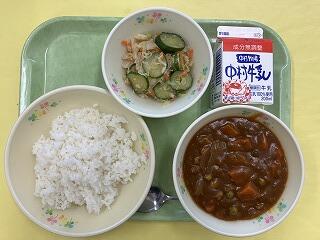 今日の給食は、ご飯、ハヤシライス、ツナサラダ、牛乳 でした。ハヤシライスも人気メニューの一つ。コクがあってとてもおいしかったです。ツナサラダも! ごちそうさまでした。