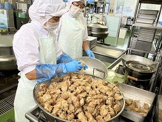 今日は、お楽しみ給食。直前まで子供たちにメニューは知らされていませんでした。お楽しみのメニューは、ご飯、コンソメスープ、鶏肉のレモン和え、添え野菜、牛乳 でした。酸味の効いた鶏肉は絶品で、お代わりをしたいくらいでした。生徒たちも、おいしそうにほおばっていました。