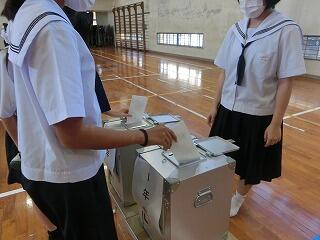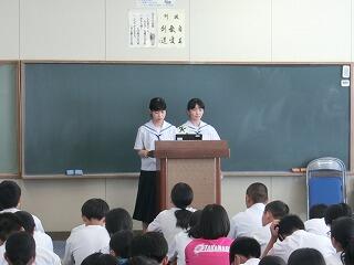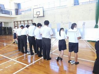 今日、生徒会役員改選の立会演説会と投票が行われました。参集とオンラインのハイブリッド型で行われた立会演説会。1,2年生の各学級から、立候補者と応援者が演説に臨みました。みんなこれからの高鍋東中のことを思い、具体的で前向きな公約を掲げて堂々と訴えかけていました。本当に素晴らしかったです。当選者の発表は後日行われますが、こんな思いをもった生徒たちが集まった高鍋東中が、これからもっと盛り上がっていくことは間違いありません。本当に楽しみです。