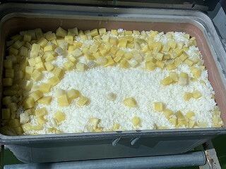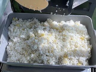 今日の給食は、さつまいもご飯、すまし汁、千切り大根入り厚焼き卵、きゅうりのコロコロ漬け、牛乳 でした。「秋」を感じる、とても味わい深いメニューでした。特に今日のすまし汁は、いつものいりこではなく、かつお節でだしをとったそうです。本当においしかったです。