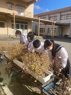 1学期から学校の中庭を彩りよく飾ってくれていた花たちが、少しずつ枯れてきました。そこで、花の植え替えをすることになり、古い苗の撤去をすることになりました。放課後、ボランティアの生徒たちが集まり、黙々と作業に取り組んでくれました。1学期の花植えの時もそうだったのですが、本当に感謝です。ありがとうございました。