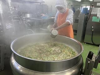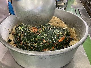 今日の給食は、いりこ菜めし、ちゃんこうどん、白和え、牛乳 でした。鶏肉にちくわ、ごぼう、椎茸など、旨味たっぷりのちゃんこうどんはとてもおいしかったです。写真は、副菜の白和えができるまでです。本当に大変な作業だなと思います。その分、おいしさが詰まっていました。ごちそうさまでした。