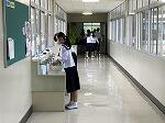 写真1枚目の様子。本校は、授業の合間の10分の休息時間に「東中応援歌」が流れて、コロナ対応の手洗いを学級ごとに交替し実施しています。2枚目からは、梅雨空の下で実施した避難訓練の様子です。雨天ということで内容を急遽変更し、避難場所確認としました。隣の高鍋東小屋上が避難場所となっています。課題を出してよりよい避難の在り方を検討したいと思います。最後の写真は、PTA理事会の様子です。今年度新役員がはじめて集まり、今後の活動計画を話し合いました。遅い時間まで大変お疲れ様でした!