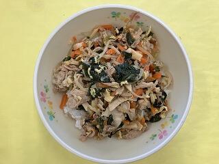 今日の給食はリクエスト献立で、生徒たちにはお楽しみでした。メニューは、ビビンバ、わかめスープ、牛乳。あるクラスでは、給食が教室に届いたときに歓声が上がっていました。みんな大好きなんですね。期待通りのおいしさで、大満足でした。