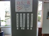 今日は久しぶりの恵みの雨でした。生徒たちは来週末からスタートするテストに向けて授業を頑張っていました。生徒玄関前に百人一首掲示が登場しました。ぜひ、少しずつでも覚え教養を身につけてほしいですね。