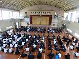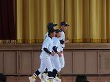 前半は部活動紹介、後半は生徒会役員による学校生活の説明がありました。部活動紹介では、どの部も趣向を凝らしてあり、おもしろく紹介する部もあったり、真剣な練習風景を紹介したりと、部ごとに特色ある発表でした。学校生活の説明では、アニメちびまる子ちゃんの役に扮して、楽しい会話を織り交ぜながら、分かりやすく、興味をひくプレゼンで、大盛り上がりでした。最後の応援団の姿にも感動しました。短い春休みと忙しい新年度の時間を使っての準備・練習、大変ご苦労様でした。慣れない新生活で、緊張していた1年生からもたくさんの笑みがこぼれており幸せな時間を過ごすことができました。