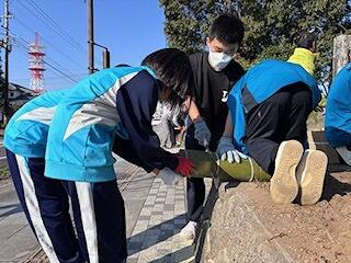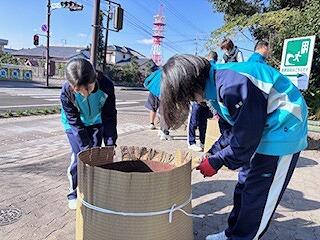 12月も中盤にさしかかり、今年もあと2週間あまりとなりました。今日は、高鍋東小学校でお正月の準備「門松づくり」が行われ、中学生も約20名が参加しました。竹を切ったり、割ったりしながら、土台のドラム缶にどんどん飾りつけをしていきます。大変な作業もありましたが、写真のように立派な門松が出来上がりました。正門前を通るときに、ゆっくりと鑑賞してください。