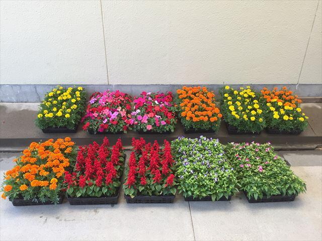 サルビア、マリーゴールド、トレニア、日々草の4種類です。