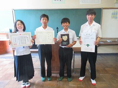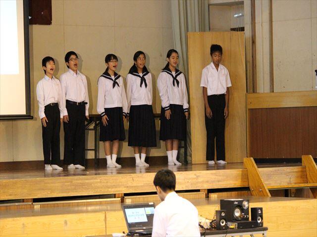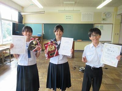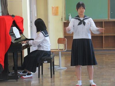 合唱の全校優勝は3年1組、伴奏者賞杉田真優さん、宮本寬大君でした。