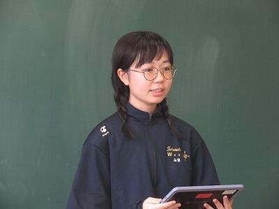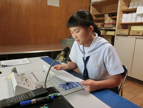 【生徒会代表】2学期にある行事を最高の思い出にするために、一つ目は指示の通る環境を作ることです。集団での行動は無言、指示をしている人に耳を傾けることが重要です。二つ目は忘れものしないことです。体育大会や文化発表会など行事では自分が困るだけでなく他の人に迷惑をかけることになります。そのようにならないためには、「私は忘れものをする」と思うとよいと考えました。「忘れものをする」と思うとその時に準備をするからです。ぜひ実践してみてください。生徒会役員の任期も終わりに近づいてきました。私は自分の意見を積極的に言えない性格を変えたいと思い生徒会役員に挑戦しました。少しずつ実行できた時はすごくうれしかったです。多くの人にとって何かに挑戦することで成長できる2学期となることを期待しています。