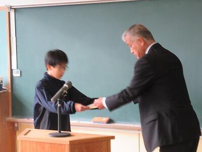 校長先生のお話、校歌斉唱の後表彰も行われました。