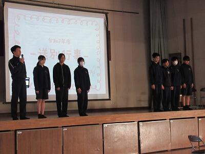 卒業式を間近に控え、卒業生を送り出す行事が行われました。