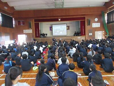 本日は、2学期終業の日でした。まず、九州ロボコン、バスケットボール部、人権作品、読書感想文、巡回作品展の表彰が行われました。