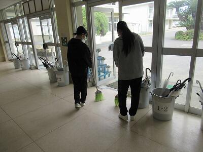 放課後、生徒玄関を覗くと、ボランティアで掃除をしてくれている生徒を見かけました。