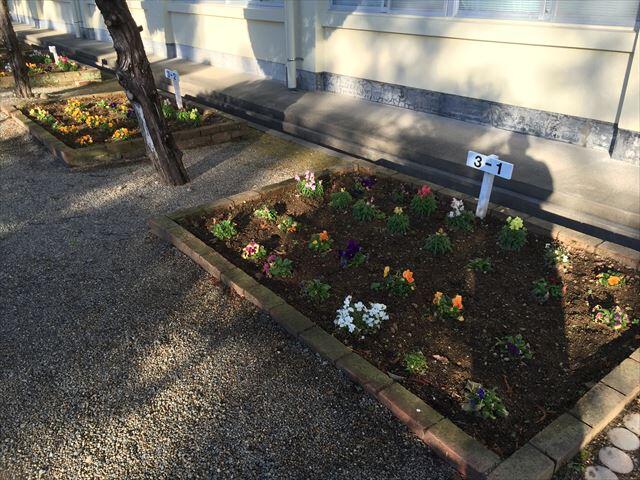 花壇で大切に育てて学校を明るくします。みなさまありがとうございました。