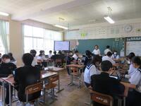 本日は、雨の中の登校でした。雨となると晴天時よりも正門前が車で混雑します。さて、本日の3年生の総合的な学習の時間は、健康教室(性教育)でした。宮崎か母ちゃっ子くらぶの白池晶様を講師にお迎えして、「思春期の特徴やからだの発達」「性に関する正しい知識」等についてお話しいただきました。これから心身ともに大人へと成長していく中学生にとってはとても意義のある時間だと思います。また、講師の白池様が帰り際に、話を聞く態度や話し合いなどに積極的に関わる生徒に関心と感謝の意を表して帰られました。講師(指導者)が気持ちよく講話(授業)ができる雰囲気がある学級・学年づくりができていることに感激いたしました。講師の皆様、ありがとうございました。