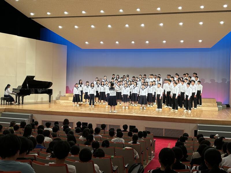 高鍋西中は3年生の全体合唱と校内合唱コンクールで金賞をとった3年2組の合唱、そして東中と合同で吹奏楽部の演奏がありました。生徒はみんな緊張した面持ちでしたが精一杯歌っていました。