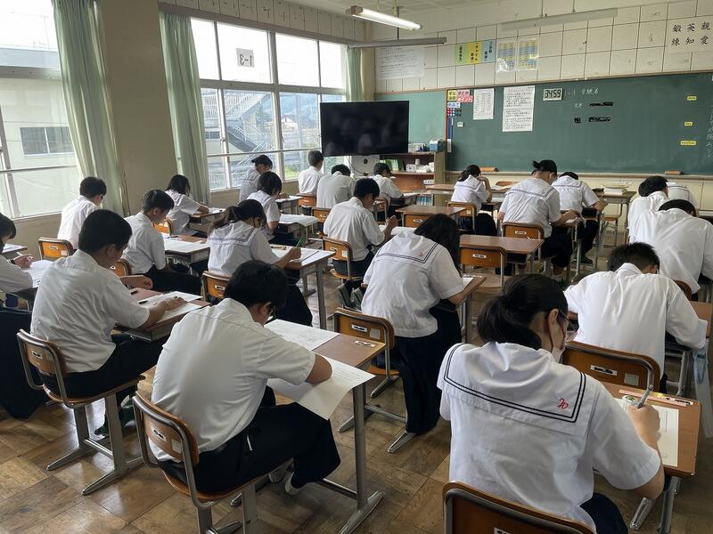 夏休みが明けた9月3日、4日早速テストが行われました。1・2年生は定期テスト、3年生は地区実力テストとなります。夏休みの勉強の成果が試されます。