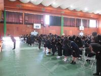 今週は県立高校一般入試が無事終わりました。そして、本日は生徒会主催の送別行事が行われました。第1部の校内ウォークラリーでは、ジェスチャー伝言や宝探しなど16のステージが準備され全学年が15班に分かれてそれぞれのゲームを楽しみました。ゲーム(競技)内容の種類と内容に感心するばかりでした。そして、第2部は運動場において、学級対抗ドッジボールと借り物競争でした。どの学級も最後の学級レクリエーションに和気あいあいでした。最後は、体育館に移動して学級対抗障害物リレーでした。なわとび、バスケットなど体育館を大いに活用したもので、リレーに参加した生徒と応援の生徒でおおいに盛り上がりました。最後は、この行事を企画・運営してくれた生徒会メンバーに対して全校生徒で慰労しました。卒業生にとっては中学校生活最後のレクリエーションでした。12月前からこの準備に取り組んでくれました生徒会のみなさん、担当の寺田先生、ご協力いただきました諸先生方に心より感謝申し上げます。すばらしい送別行事となりました。