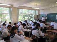本日は、雨の中の登校でした。雨となると晴天時よりも正門前が車で混雑します。さて、本日の3年生の総合的な学習の時間は、健康教室(性教育)でした。宮崎か母ちゃっ子くらぶの白池晶様を講師にお迎えして、「思春期の特徴やからだの発達」「性に関する正しい知識」等についてお話しいただきました。これから心身ともに大人へと成長していく中学生にとってはとても意義のある時間だと思います。また、講師の白池様が帰り際に、話を聞く態度や話し合いなどに積極的に関わる生徒に関心と感謝の意を表して帰られました。講師(指導者)が気持ちよく講話(授業)ができる雰囲気がある学級・学年づくりができていることに感激いたしました。講師の皆様、ありがとうございました。