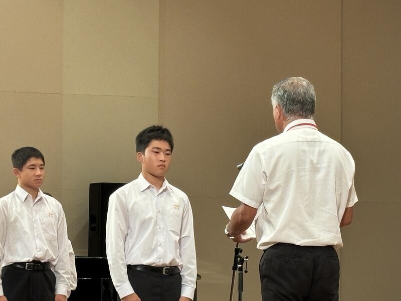 高鍋西中は3年生の全体合唱と校内合唱コンクールで金賞をとった3年2組の合唱、そして東中と合同で吹奏楽部の演奏がありました。生徒はみんな緊張した面持ちでしたが精一杯歌っていました。