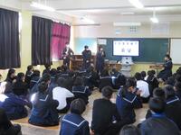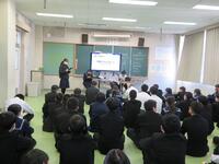 朝晩は冷え込みますが、日中は暖かい日が続いています。これからが寒気が厳しくなってくる時期です。受験シーズンに入っていきますので、受験生だけではなく全校生徒・職員で風邪、インフル対策等を行っていきましょう。さて、本日の午後、代表生徒が高鍋町内の「オレンジカフェ杏」にて、高齢者の皆様が集う憩いの場で、講師の立場で「認知症講座」を開きました。先日、本校で実施した全校道徳「認知症川柳づくり」において、事前指導として作成したプレゼンテーションがとても分かりやすく、見学に来られた町社会福祉協議会からも高評価を受け、この度の出前講座への講師のオファー受けました。今回は、5名で参加し、それぞれが任された役割をしっかり果たしていました。大人の方相手に、とても丁寧に分かりやすい落ち着いた説明にとても感心しましたし、これからもどんどん社会で活躍してほしいと思いました。ありがとうございました。