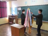 今週で2学期が終了する最終週を迎えました。一昨日から冷え込みが厳しくなってきました。最後の週、有終の美を飾りましょう。さて、17日(日)にPTA役員の皆様方を中心に年末恒例の「門松づくり」を行っていただきました。今年も黒木清作様のご指導をいただきなから2時間弱で作り上げることができました。当日の作業にご協力いただきました保護者、生徒の皆様、事前に竹の伐採をしていただきました保護者の皆様等々に心より感謝申し上げます。お陰様で2024年を気持ちよく迎える準備が整いました。ありがとうございました。