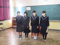 本日の朝は、氷点下でした。そんな中、2学期の終業の日を迎えました。大清掃を行い学び舎をきれいにしたのち、終業式を行いました。式はインフルエンザや寒波襲来のため、多目的室から各学級へ配信するオンラインでの実施となりました。式では各学年と生徒会代表の生徒(1年:安藝さん、2年:児玉さん、3年:田中さん、生徒会:馬渡さん)が2学期の個人や全体の反省(良かった点、改善点)をしっかり自身の言葉で発表しました。2学期も大きな事件や事故に遭遇することなくまた、何とか熱中症や感染症を乗り越えて終えることができました。保護者の皆様、地域及び関係各位に心より御礼申し上げます。ありがとうございました。また、式終了後に各分野で活躍した生徒の表彰を行いました。運動・文化面での活躍、本当におめでとうございました。さらに精進していってください。